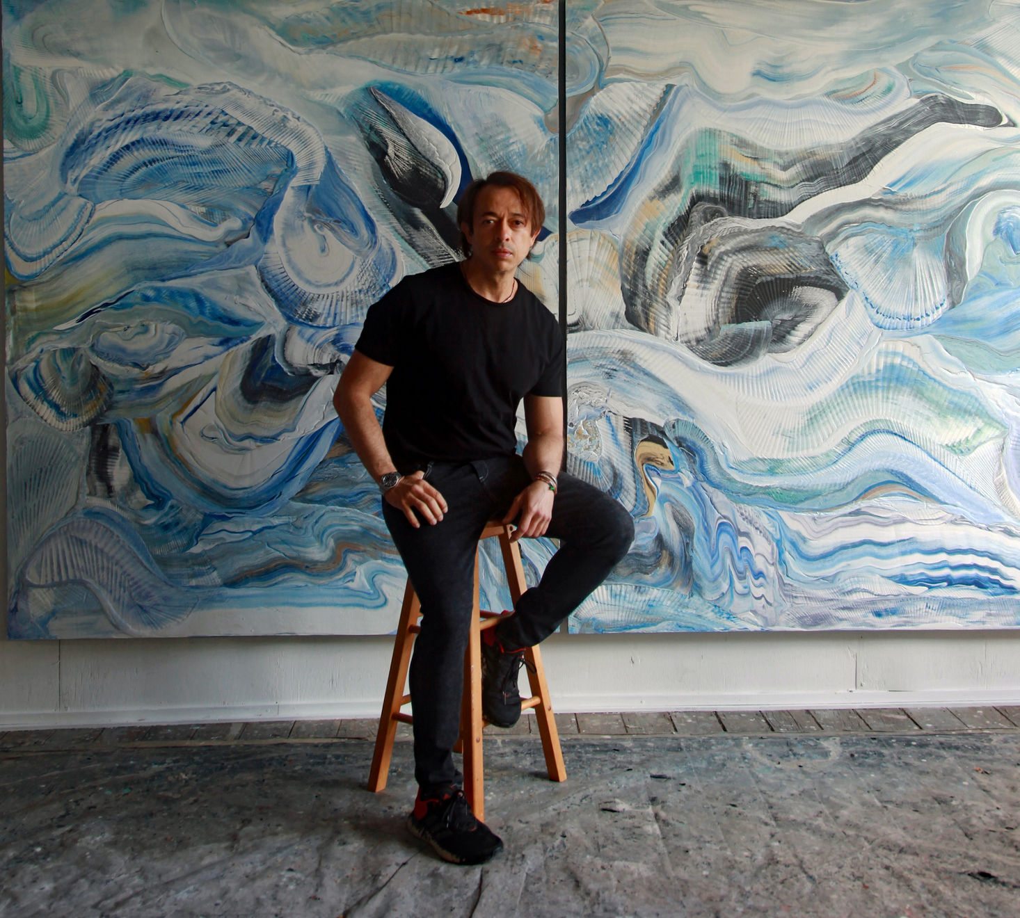 Eduardo Santos: The title for this exhibition is Mar Dentro, which is Portuguese for ‘Sea Within’. I have a great connection and respect for the ocean and in my art I explore its energy; the power, calmness and mystery. A storm may rage above with waves crashing against the surface, but the world beneath is calm and still, imbued with a constant tranquility. Mar Dentro is an exploration of the internal oceans within us, it explores the duplicity of the oceans, both in its physical and emotional state. Mar Dentro was created at a time when I had found a revitalised perspective on life, I emerged from a time of angst and felt stronger and more positive as a result. My work for Mar Dentro reflects the energy of new found optimism.