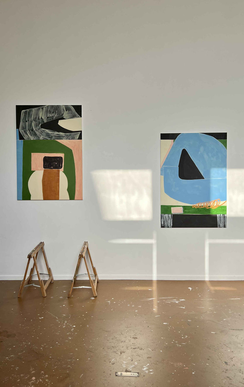 Marie is highly susceptible to all imagery around her, architecture, people, clothing, vehicles, and advertising. However, it's the negative space between shapes and objects which really draws her attention and is reflected in our art. In German they're called Zwischenraumgespenster which means as much as 'phantoms that live in the in between-space'. It is really these phantoms that catch the eye and introduce the viewer to the rest of the work.